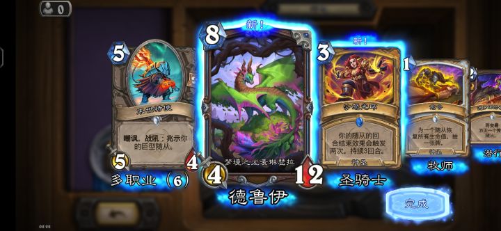 随机的快乐,飞机德10-3被天胡一费法师巨型打死了,小德前期铺场,中后期飞机还是无敌的,多选点0费探底,补1-2个23发现野兽就可以,现在在玩王子萨,其他两个橙卡更不想玩,萨满能控住场面,我就想玩玩这个随机的,不求输赢,只要爽