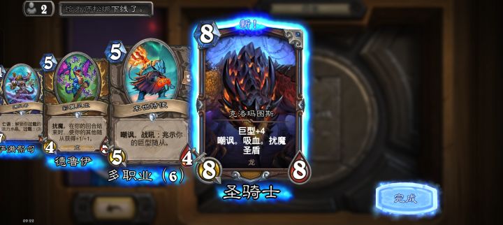 之前天梯一直在用dk打,这个版本环境确实很糟糕,兆示体系一坨,别人做完了我4费才刚开始,看着萨满4-8不知道怎么解了。昨天换了法术瞎一波就上了传说了,不错不错。