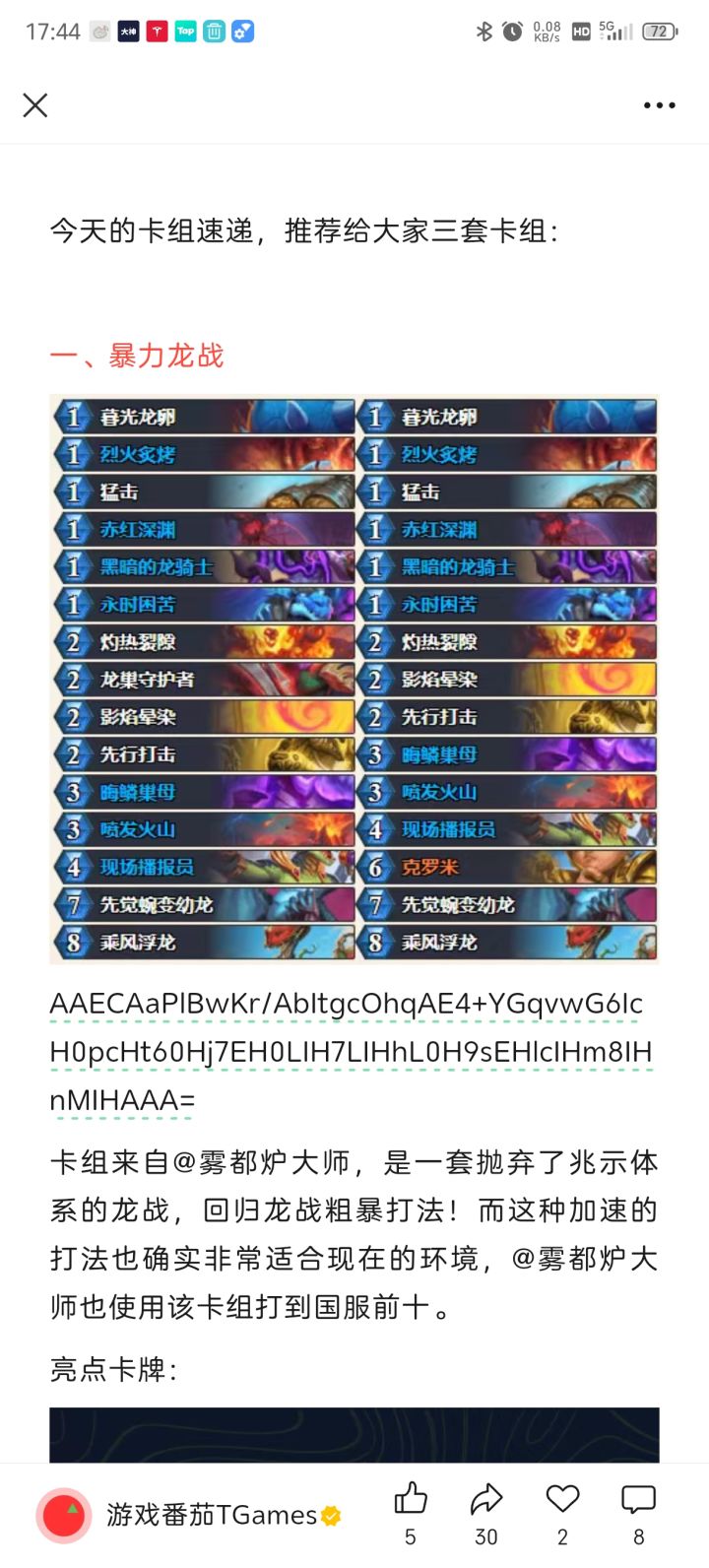 克罗米龙战——炉大师进前十AAECAaPlBwKr/AbItgcOhqAE4+YGqvwG6IcH0pcHt60Hj7EH0LIH7LIHhL0H9sEHlcIHm8IHnMIHAAA=最新前十的克罗米龙战作为2015年海盗龙战的构筑元老之一,我看到以后一张都不想改!(我一向比较挑剔,一如对诗词的推敲,一般卡组5秒之内就想改掉5-20张,改却动辄小时起步)此卡组跟我对新版龙战乃至整个战士职