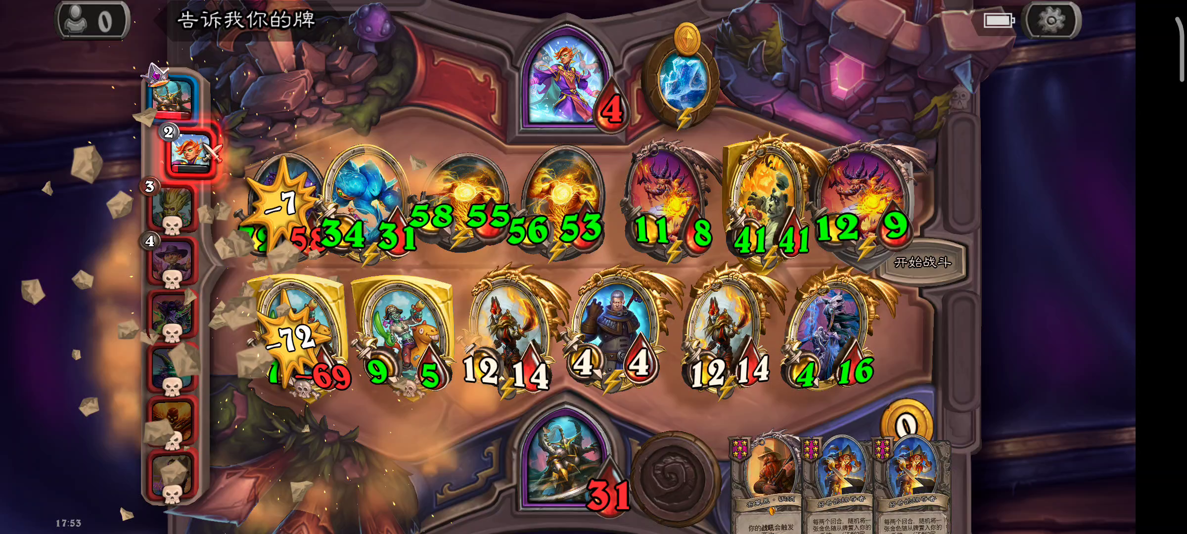 我用发现一张亡语牌找到术士终极。然后再洗终极。就这么的洗了大概三十多张。后面被换家德换掉了。最后神抽。抽上战士的终极。然后老婆过墙。直接爆踢他。最可怜的是古夫给我换过来了。太爽咯😂