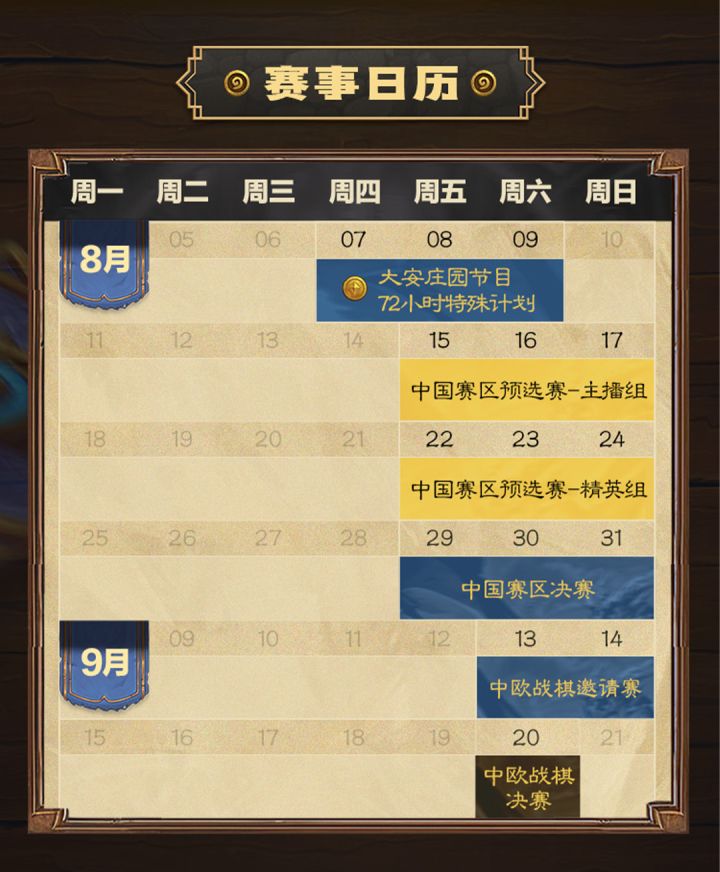 大安庄园中欧战棋邀请赛中国赛区预选赛-主播组即将开赛! 8月15日至17日,24位人气战棋主播将展开对决,争夺8个晋级中国赛区决赛的名额! 届时请锁定虎牙直播【安德罗妮】直播间及【大安庄园中欧战棋邀请赛】官方直播间,让我们共同见证精彩! #大安庄园全球邀请赛 #炉石酒馆战棋新赛季S11 #炉石传说