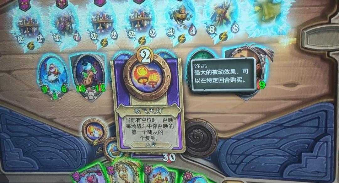 选选的大饰品飞天灯,效果描述是一个随从的复制,但是为什么掉了两个?拉鱼也没有点金啊#炉石传说 #炉石传说酒馆