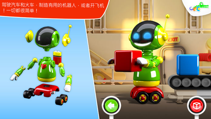 这款应用程序包含多种机器,让孩子学习如何将它们拼装在一起。孩子们将会喜欢添加机轮、螺旋桨、机翼、窗户等来组建飞机,添加锚和烟囱来建造船只,以及更多游戏。