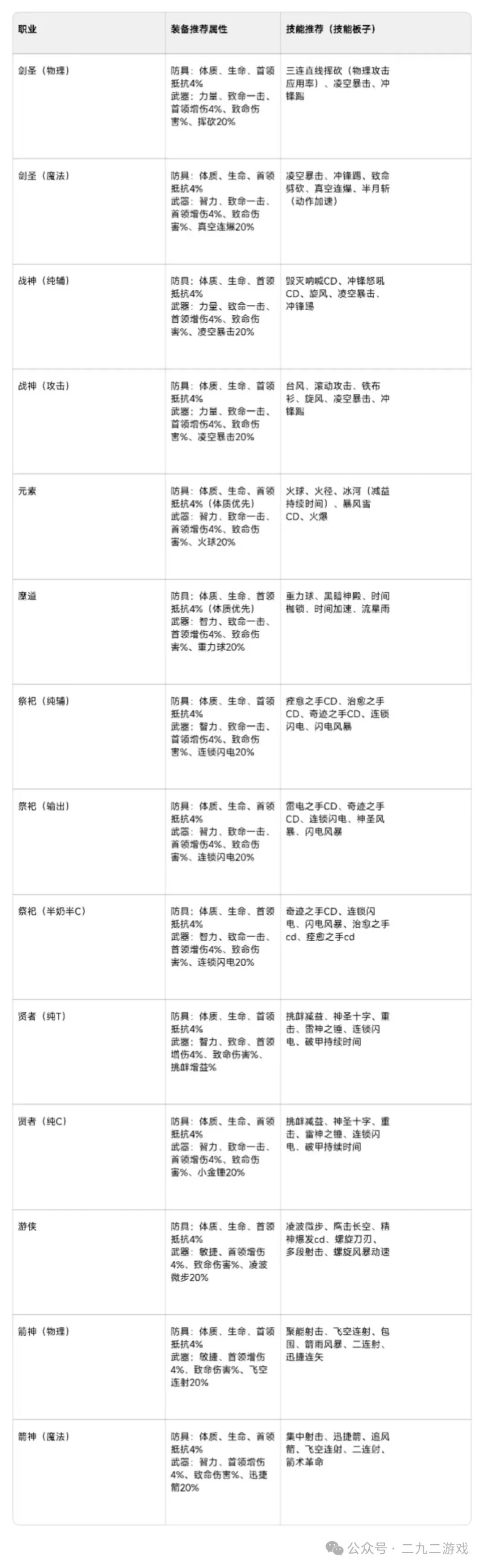 整理了当前版本职业推荐数据