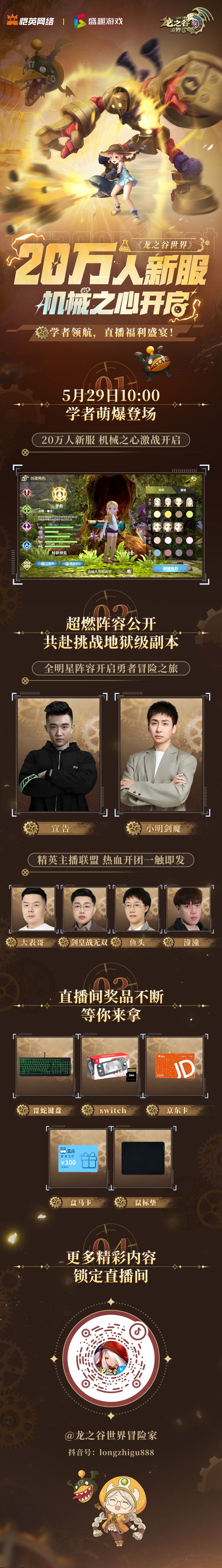 5月20日16点抖音直播间,龙之谷世界百日回馈,限时1天。