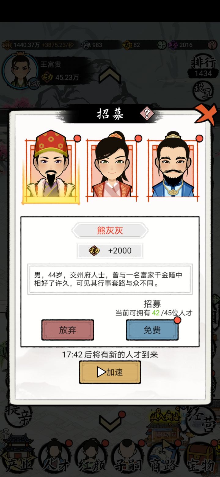 欢迎来到首富的世界~5月28日 请移步测试服下载体验:https://www.taptap.com/app/215894意不意外,惊不惊喜,我们紧赶慢赶的终于把产品做好了,具体上线已经确定,5月28日,本周五重磅上线,比原先定的时间提前了6天哦从一个糖人摊的小摊贩做起,如何才能成长为一届首富?答案就在游戏中联姻系统和商路探索模式,现都已开启。春风又绿江南岸,到时候不见不散~