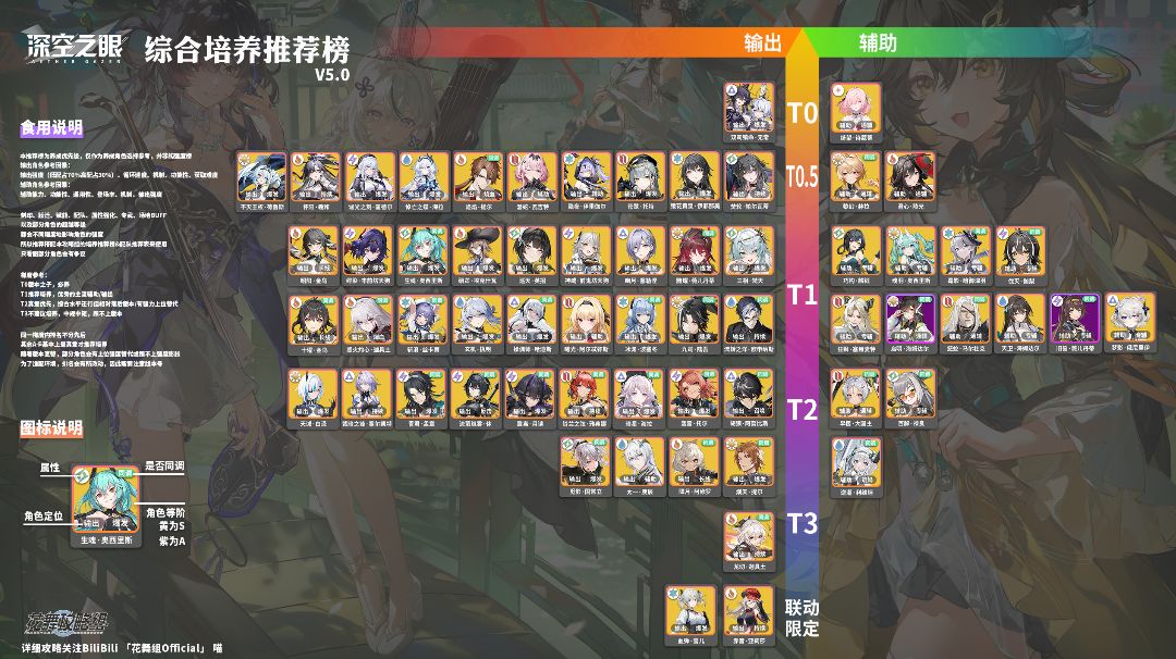 作者:花舞攻略组(侵删) 培养推荐榜浏览须知 这个榜是培养推荐榜!不是纯强度榜!综合了很多因素来排名的!并不是单纯的按强度排名! 评测标准: T0:抽到必养,全方面优秀,版本之子 T0.5:次顶级的输出和辅助,有强度,通用性也不错,十分推荐培养 T1:推荐培养,机制/输出/配队特别优秀,属于主流输出/辅助 T1.5:可以选择培养,强度比不上主流输出,部分有上位替代角色 T2:可以选择培养,综