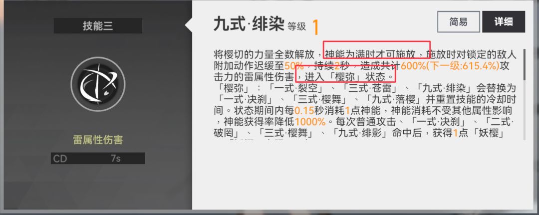 (一)、角色简评:云揽夕阳求浅色,一染绯红,映月清晖侧 (QQ交流群:391519598) (1)角色定位:真樱神系、雷属性、神能型、近战持续输出角色; (2)角色特点:白毛飘飘,长剑飒飒,技能流畅,特效华丽,新手玩家轻松上手,输出能力T1; (3)核心机制: 【樱弥】状态当绯染(后续简称樱切)的神能充满时,可以主动点击3技能,进入【樱弥】状态,进行爆发输出。(同类机制参考雅典娜的【鸣刃】状态、英
