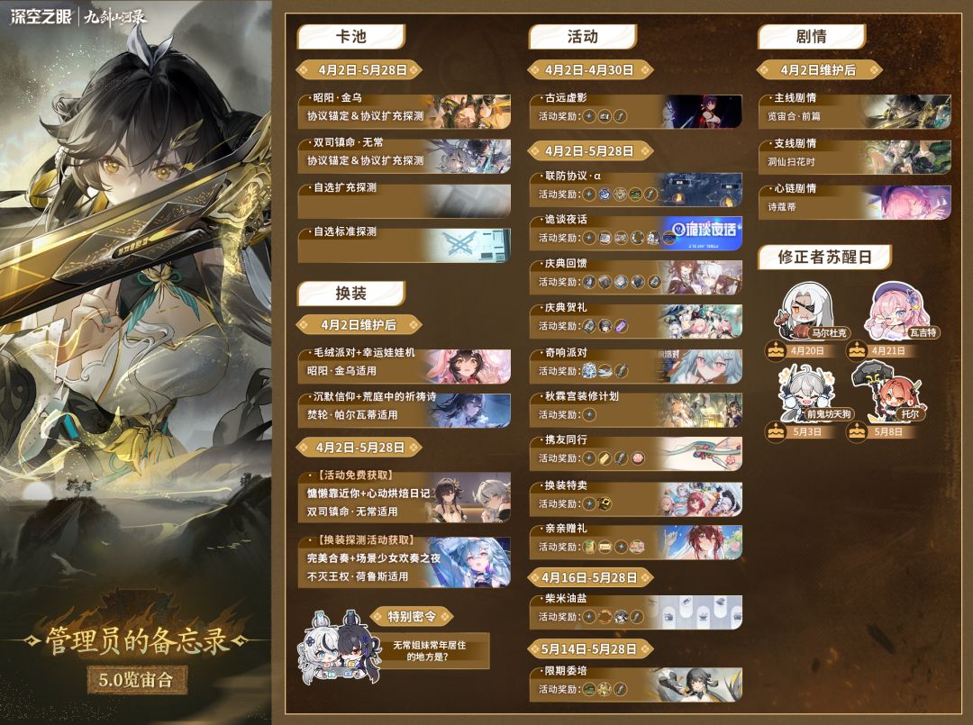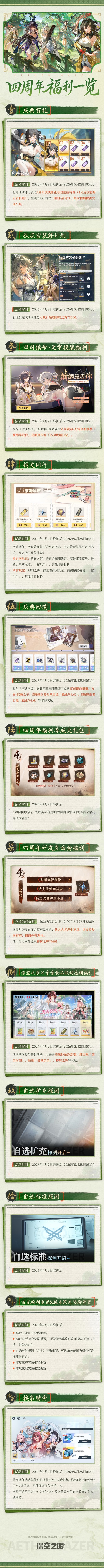 亲爱的管理员好呀! 《深空之眼》4周年福利庆典活动正式开启,本吨为管理员整理了一份福利情报,请管理员们查阅~