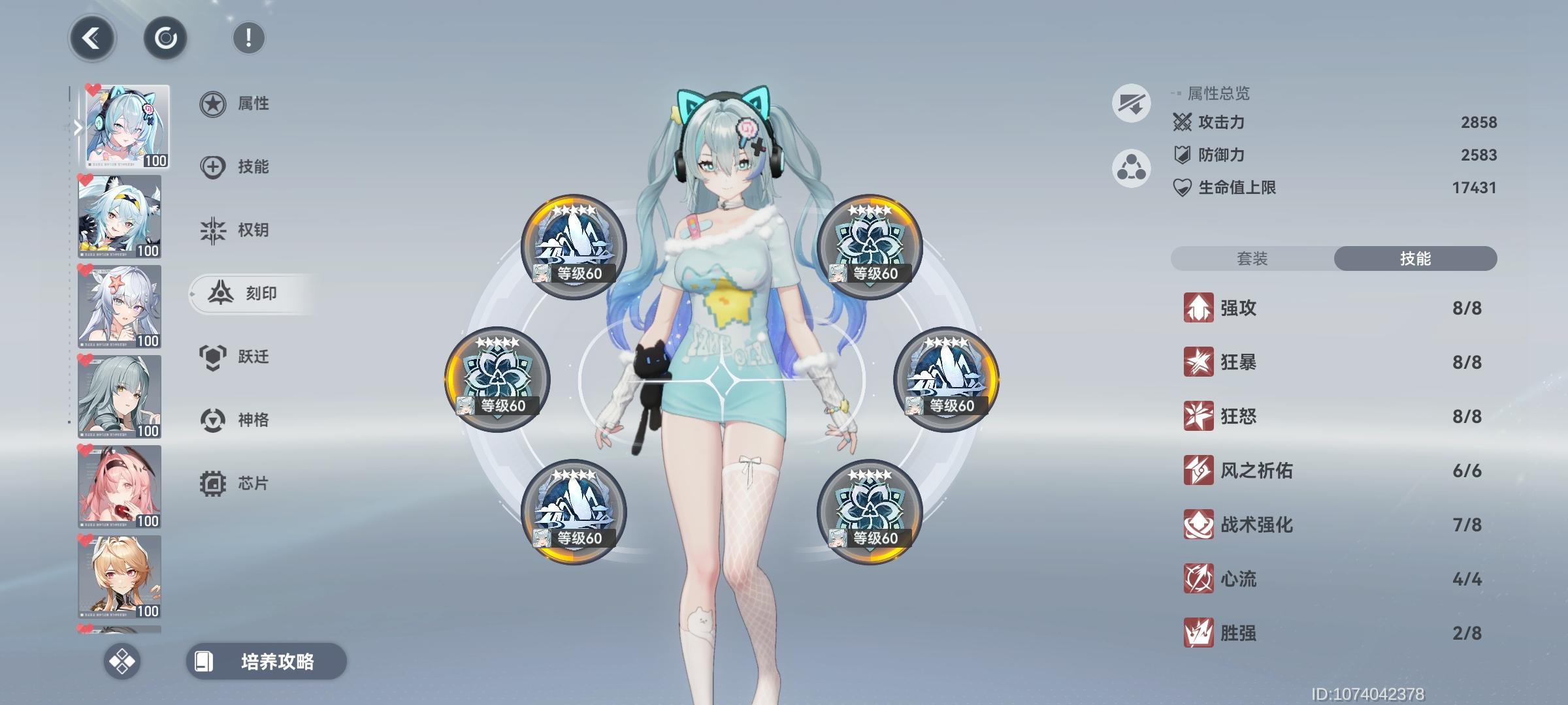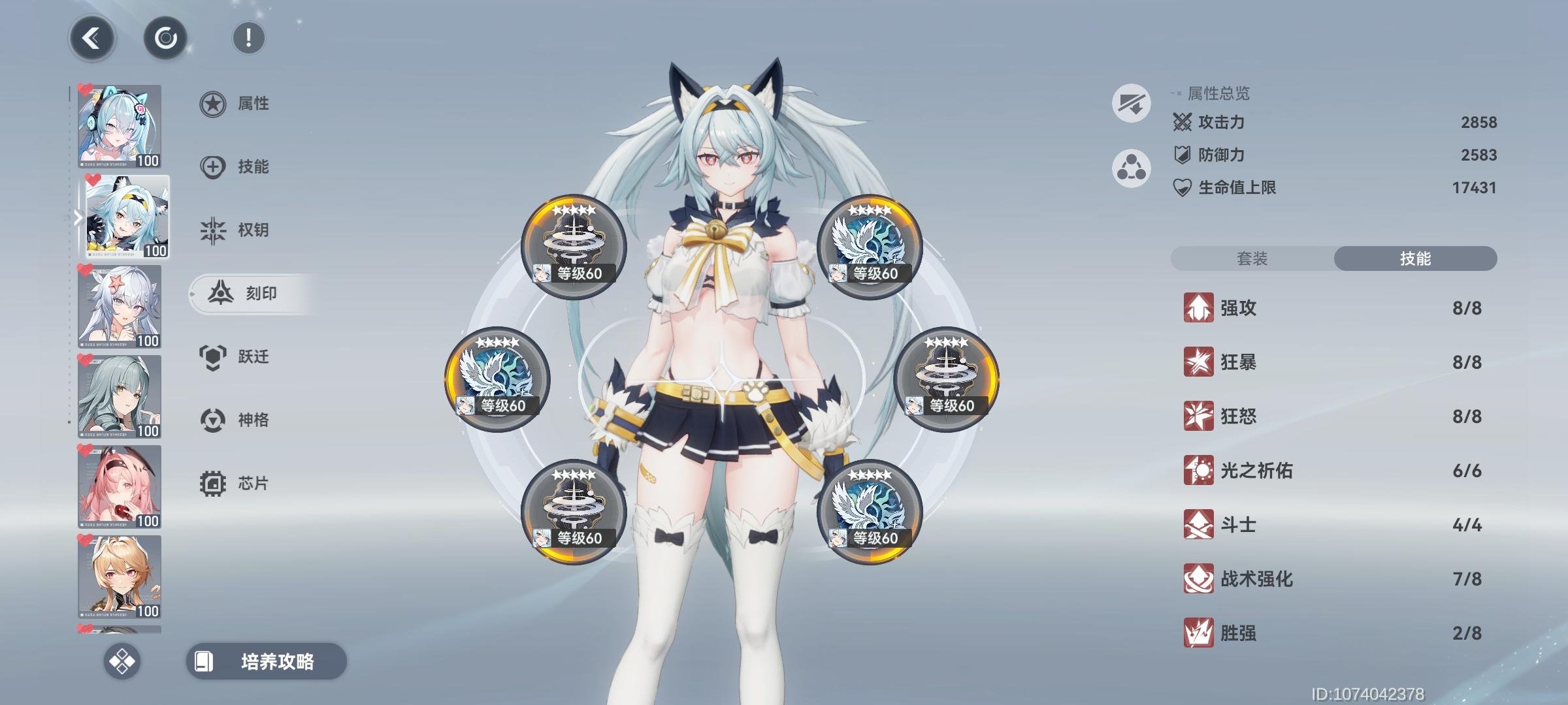 八属性就等一个火队的牛仔售后了其余7队基本上全是一个SSS配两个SS的配置,并且全员带专(无论是否刚需),全员百级,主C词条全部8886742完美毕业,其中梵天,大困,荷鲁斯,执明等主C全是5+2,牛仔目前单S等一个签到奖励也能到SS了
