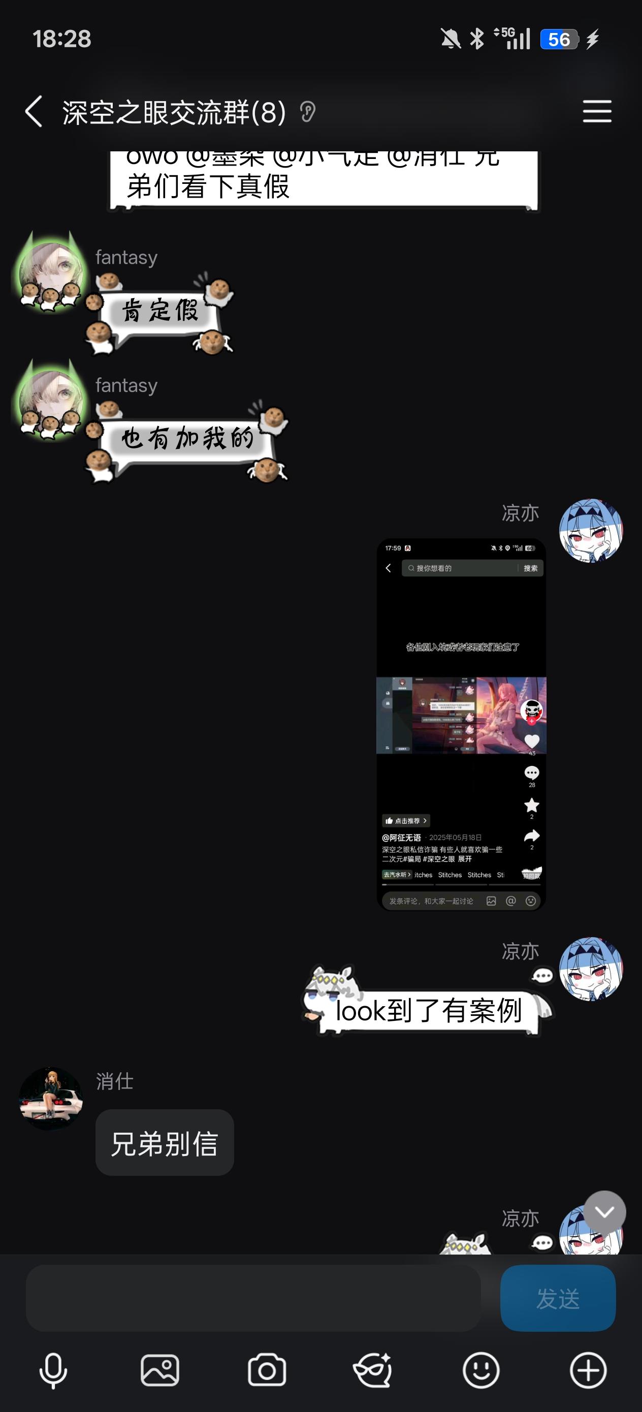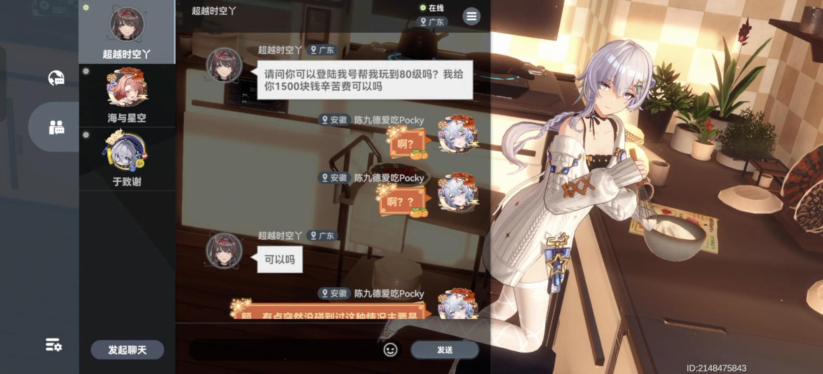 大眼这不冷不热的游戏都有人骗了么,还好上网搜了下,我自已公会q群的人也有好几个也碰到了,跟骗子聊了会自已把我删了,估计骗不到嫌我烦了