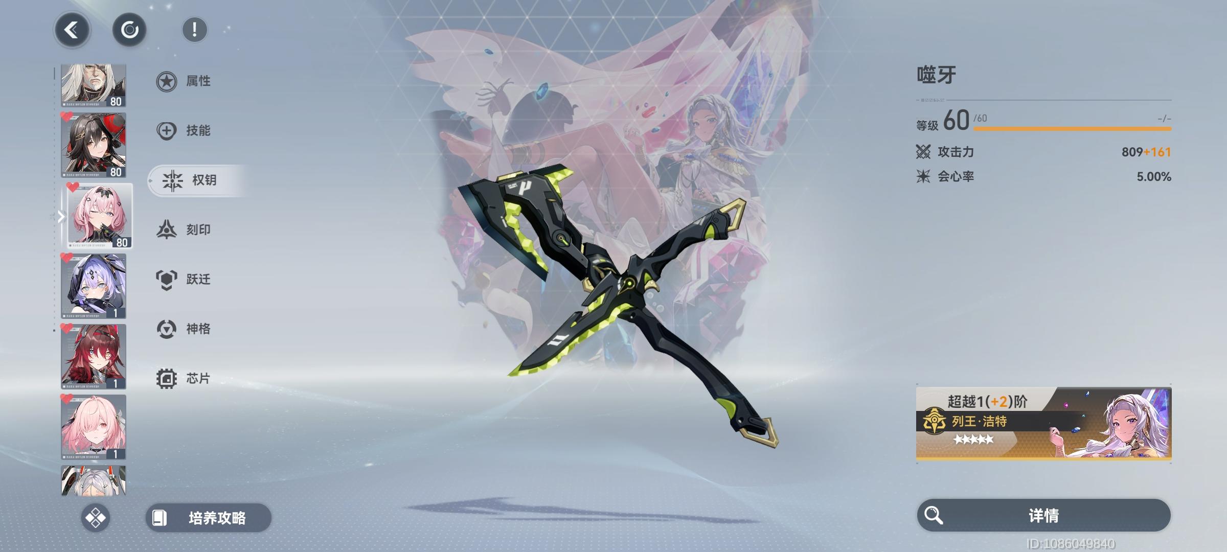 看到人物培养界面仍然是让我头大,,,当初就是因为培养人物难度过高退的游,其他二游出新角色前,稍微屯一下拿到新角色练度都能直接拉满,到大眼这你就养吧,一养一个不吱声,我累死累活肝游戏,到退游前实际培养好的也就金乌一个。还有就是,大眼钥从的立绘还是又精致又好看,除了一眼扫过去某个分辨率都比其他低的立绘,,,