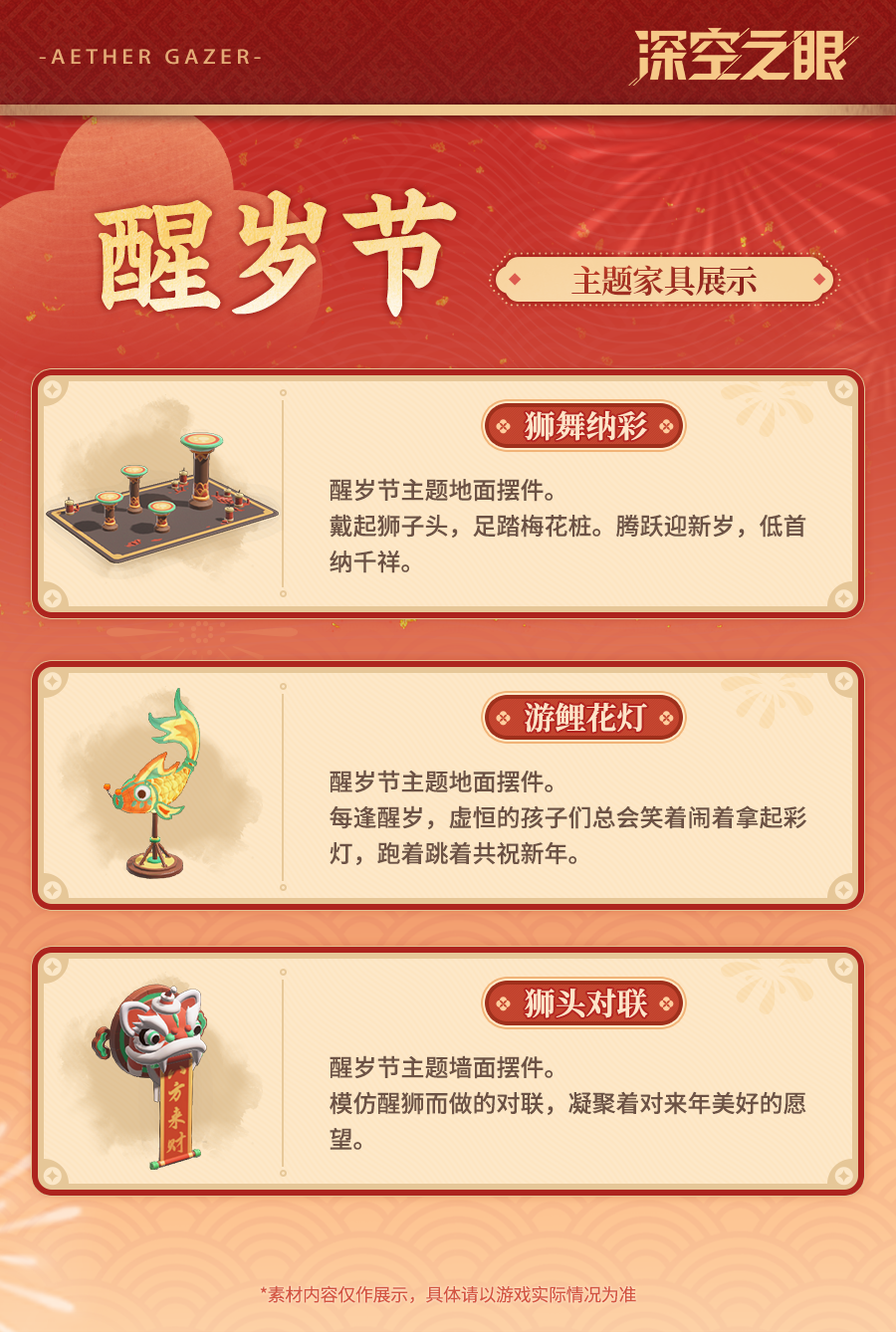 亲爱的管理员好!醒岁节主题家具将于2月5日维护更新完成后上线,管理员可通过参与「决斗王·醒岁夺魁赛」活动获取。