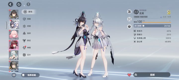 现在手上有4队无常ss专 新金乌 诗寇蒂ss专荷鲁斯专 魂羽 黎幻通专羲和ss(补?) 新金乌 澄光专梵天ss(补?) 帕瓦 麟玉(补?)羲和版本入坑的算是,所以先用的羲和队梵天也没完全养日常就是用的无常这个操作会无常,会荷鲁斯,羲和不会操作梵天没有试过手上还有一个天恒专武没有用