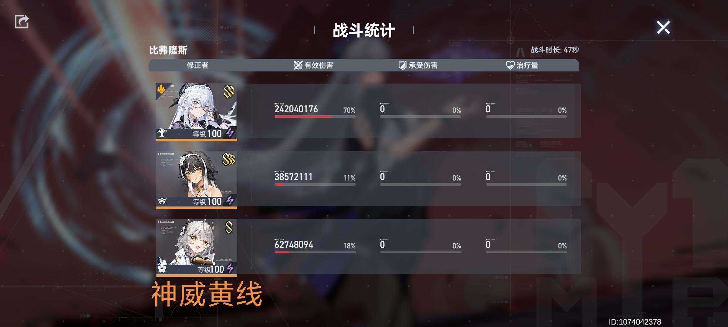 手操雷霍SS4+2雷迭代47秒,凹一凹估计还能快个几秒,SS1+2樱切只能打1分20-1分30之间,三个角色的词条不说大毕业吧,也都不差。而且神威蓝线输出和黄线辅助神格都试过了,没什么差距,要说快,确实是快了樱切很多,但对标荷鲁斯顺区的数值就差的有点明显了,不指望跟荷鲁斯数值一样,但差距确实也不小