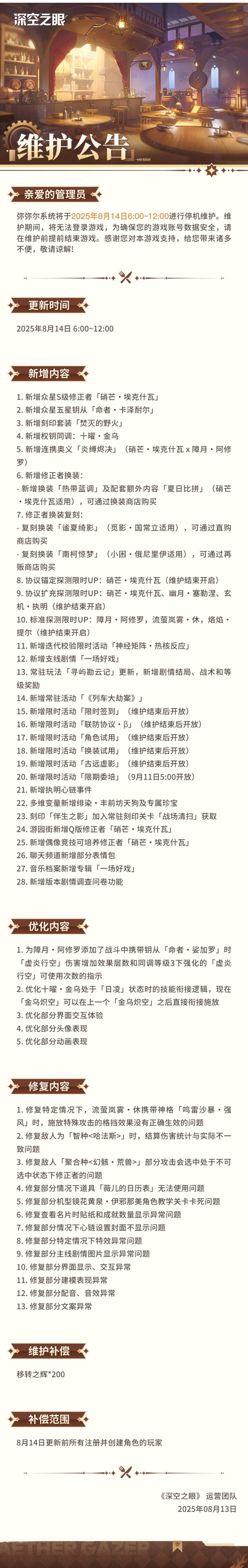 《深空之眼》8月14日停机维护公告