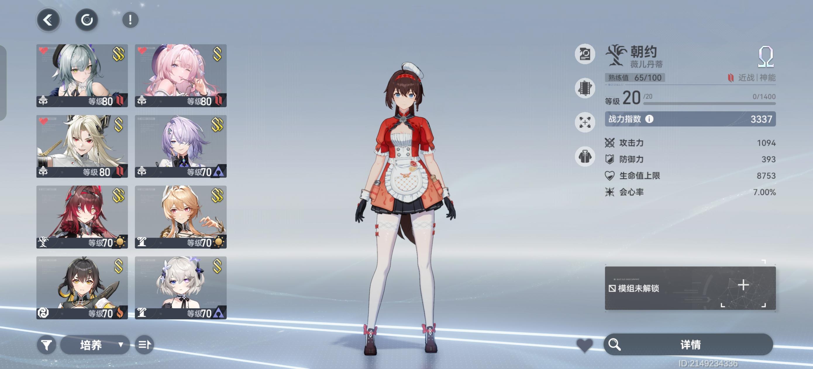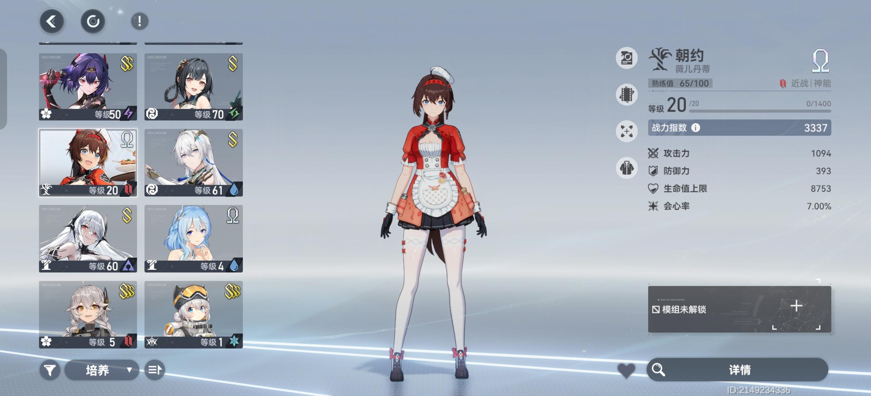 自建 信不过那些初始 慢慢肝到过年应该能多二三万转移吧感觉 顺带问下大佬们还有哪些角色值得养?光薇儿跟麟玉还有焚轮都没得配队啊现在,又打算攒一攒不想抽了#萌新求助 #深空之眼