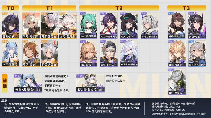 目前攻略组仍在探讨某几位S角色的强度和榜单设定,将于近期更新,下方榜单仅为开服时的强度梯度,现在仍有参考意义,海拉攻略已更新。