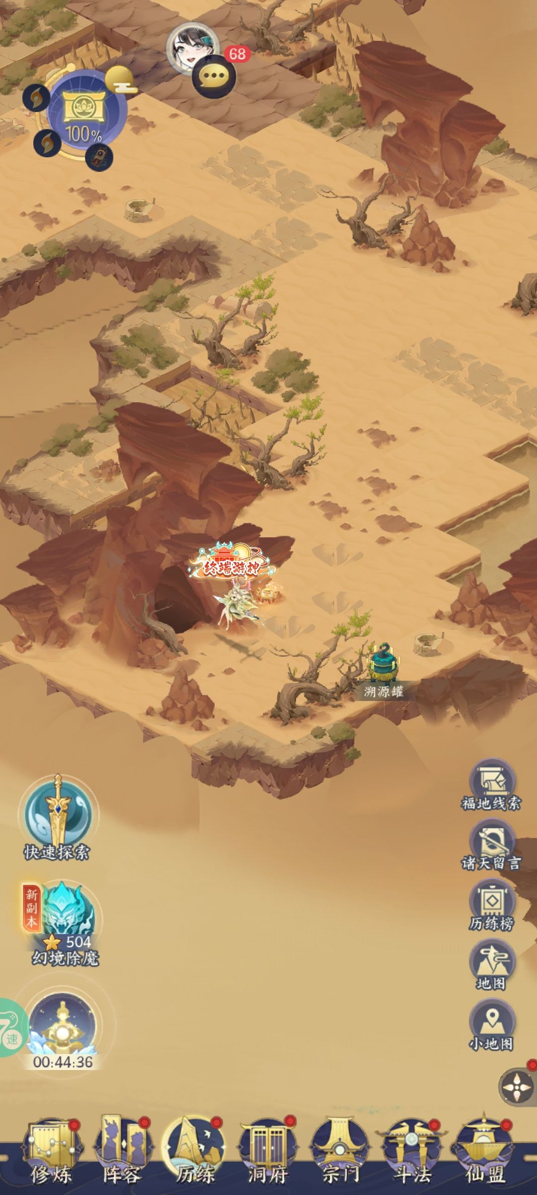 第一天(由于图片限制,第一天合并到第一张图) 1的位置点了之后说有个彩虹,500仙晶(预估进度8%,当时没注意) 2的黑影点了之后等第二天(我今天刚刚飞升,第二天见6) 3的位置的草多点几下,神器炼星石(进度5%),后面是常驻给经验,(3天一收) 4的位置有炳剑,多点几下,灵品本命法宝残纹40(进度4%) 第二天(由于图片限制,第二天合并到第二张图) 5的位置有个小船,点一下500仙晶 6的位置点