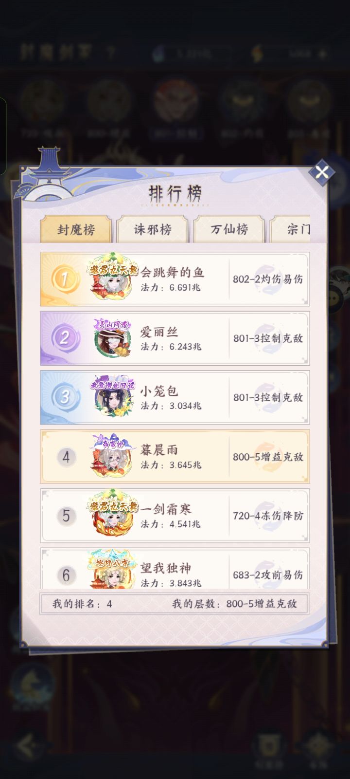 (配置仅供参考,个人观点不喜勿喷但欢迎讨论,个人水平有限 如有不足欢迎指正。)前言:800层后很难打得动了,故本次攻略只适合800级及之前的层数。先给大伙明确一个概念,封魔打不动大部分都是自身战力不足或者遇到敌方全体清明的情况,氪佬一般都可以靠战力碾压过去,但是对于平民来说只能靠搭配和技巧了。对于我来说,封魔里的关卡类型只有敌方全体清明状态和其他这两种情况。我先给下打其他关卡的配置(详见图二)