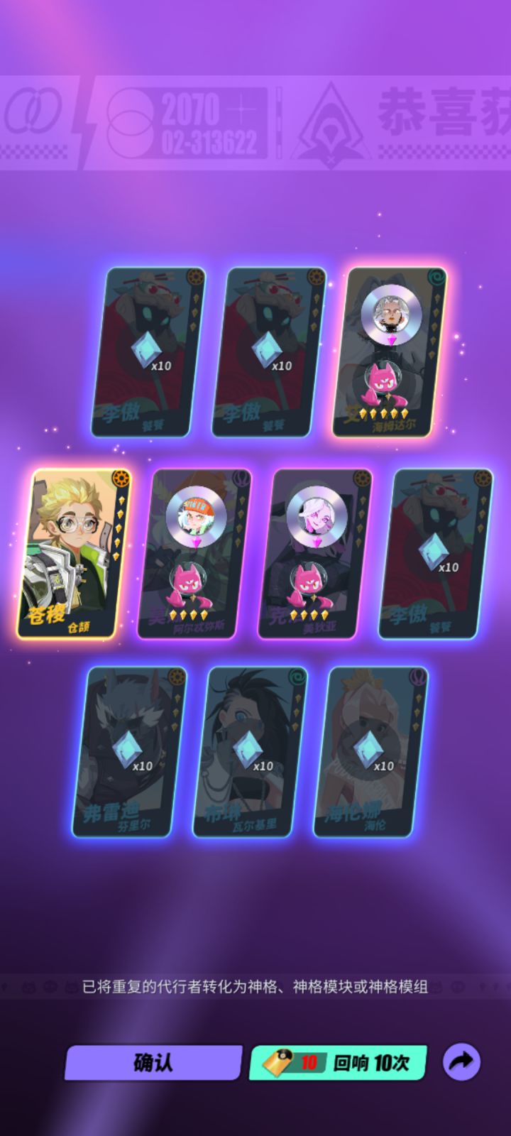 靠着对画风的偏好坚持白螵半年多。小1000抽拿到双黄,这游戏脱坑等更新回坑是常态,希望不要一直做加法变成魔灵。。。玩了魔灵召唤新游,的确是不太好玩,东西太多,就像是把旧魔灵8年积累一口气全放进来了。汉城那边喜欢坐牢游戏,咱们不要。。陈