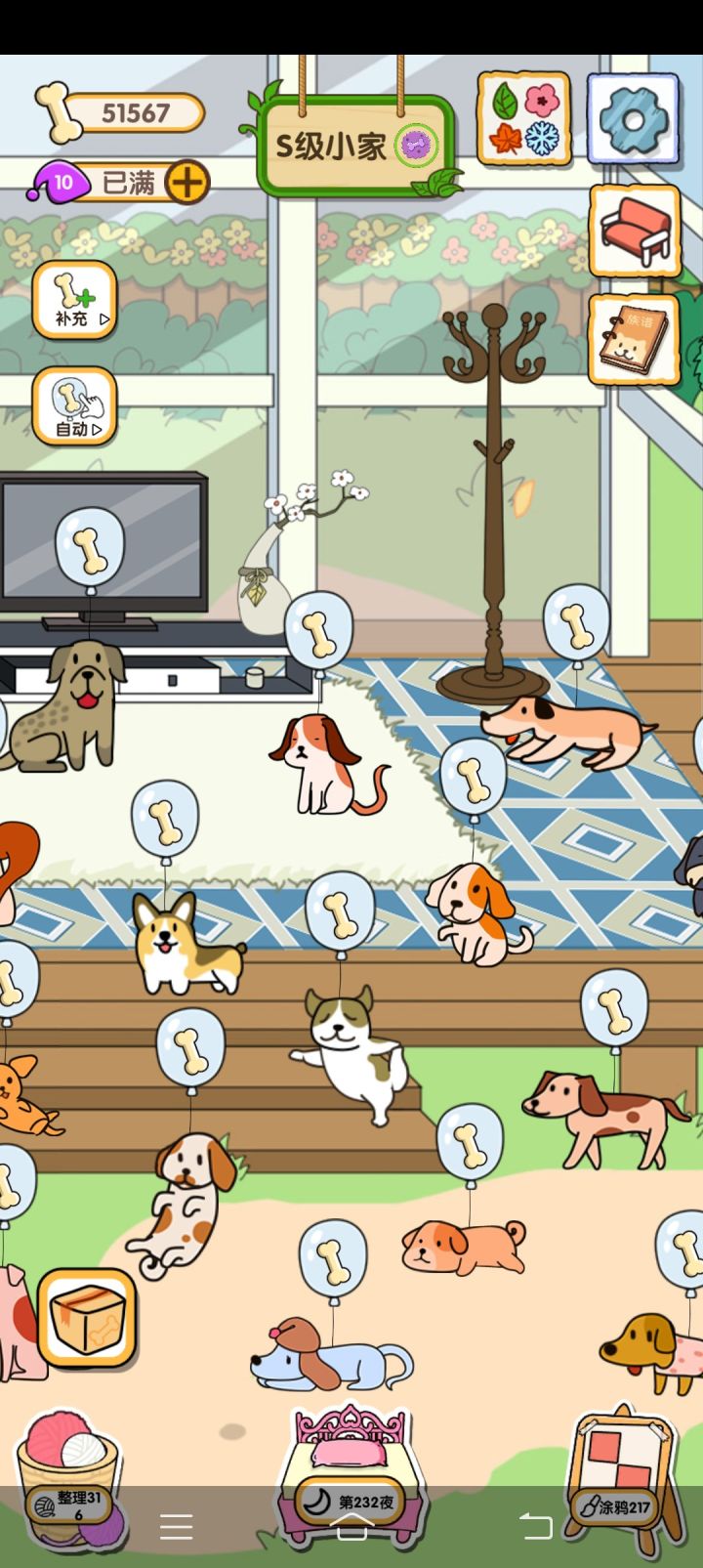 应该算是叭就是买完了家具养完了小狗quq小狗有些真的丑丑的quq所以我给好看的狗狗来了一个!特写ovo(就是喜欢好看的)三个游戏也都很有意思!我一开始玩的时候也想着睡觉那个游戏也可出个图鉴,然鹅真的太多关了,还是别要图鉴了quq放毛线球那个真的芜湖!最爱这个!涂鸦那个so easy芜湖跟着这款游戏更新了三次,大感觉就是比一开始有个季节变化还有涂鸦那个游戏,诶?是三次么quq而且quq我