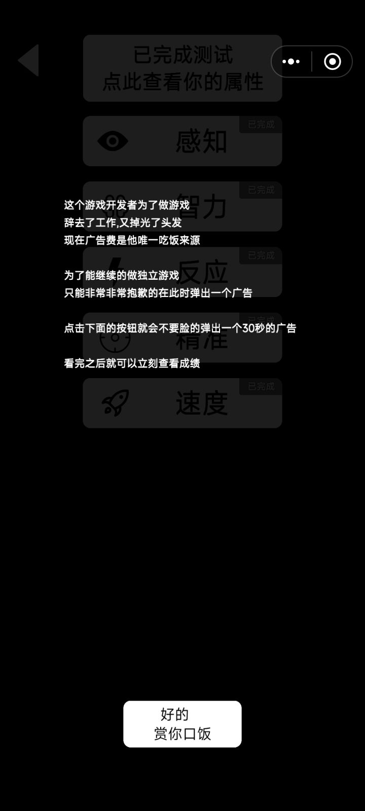 我的反应确实,一般玩游戏确实这个确实很能反应出来。这个反应能力也关于专注力啊,我专注力不好,所以呢反应也比较差。虽然这不能概括你全部的,但是也能检测出来一些什么。