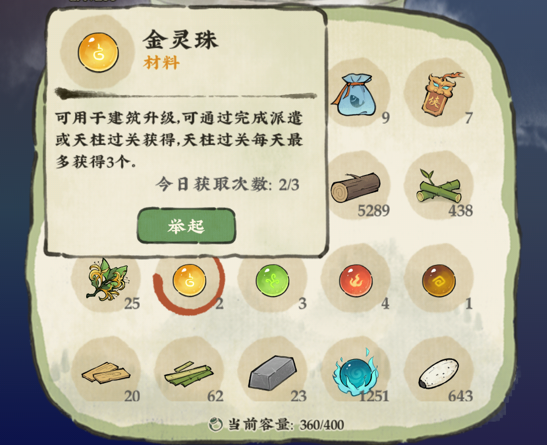 可以通过背包看每日灵珠获得情况,如果灵珠用完了就通过建筑查看。 我每天都记不清楚土灵珠三颗得满没[表情_捂脸哭]