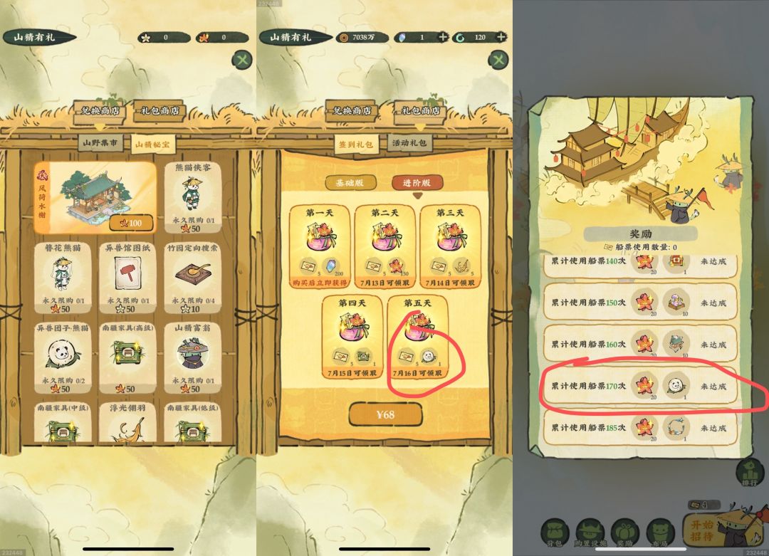 首先,这次活动夸夸,对0氪十分友好。 这次活动能拿到啥?熊猫+熊猫服饰+t0建筑+鸿鹄坐骑+活动头像+炫酷头像框。 这次活动的硬通货是船票,你能拿的几乎所有东西都只跟船票挂钩。活动奖励拿完是185票。 ➡️0氪上线可以获取64票。 ➡️用1080朱雀玉可以获取36票(刚好拿到坐骑大白鸟)。 ➡️100以后票需要用¥购买。少买一个68元礼包可以氪满185票,总共是294元(仅100票以后的,不包含灵