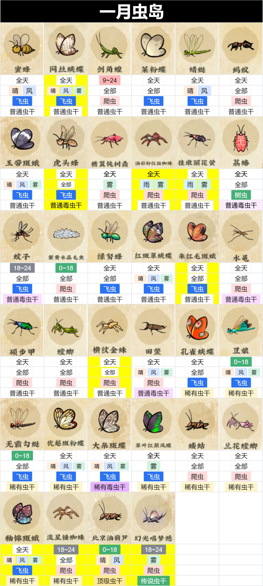 一月新虫鱼岛已集齐,肝肝肝肝
