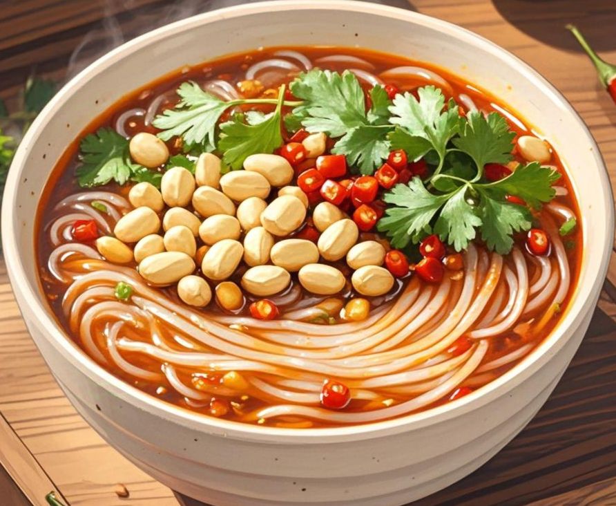 菜肴名称:酸辣粉 烹饪食材:红薯粉丝*1、花生*1、辣椒*1、香菜*1 描述:酸辣粉是川渝地区的传统特色小吃 ,红薯粉温水泡软后入沸水煮熟,碗中依次放入蒜末、辣椒等调料浇热油激发香味,再加生抽、醋等调汁,将煮好的粉入碗,点缀花生米、黄豆、葱花与香菜即可。 作者:吴彦祖 游戏账号:197370 #仙山小农食谱共创