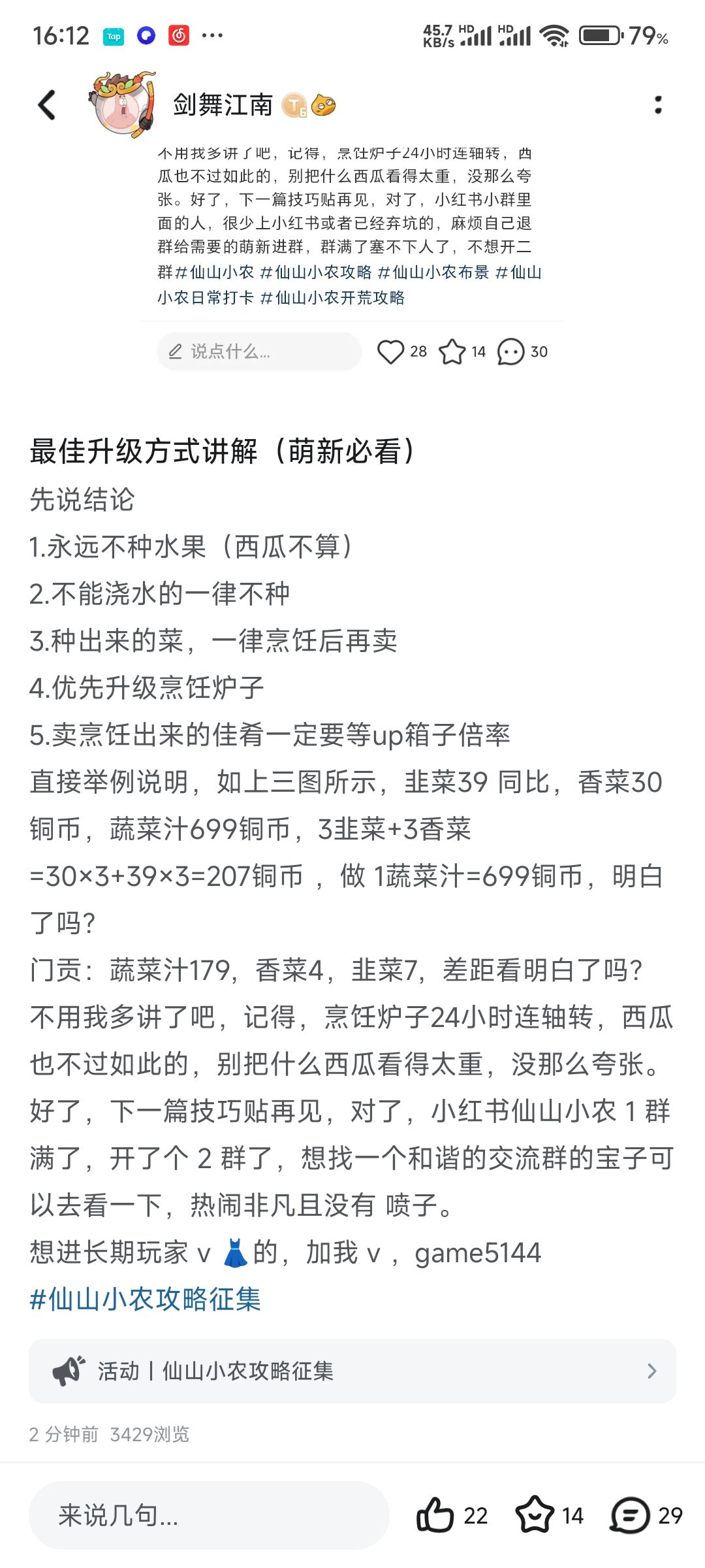 自从浇水效率越来越高之后,每天全部可浇水的种子都能种完,现在 37 级,每天 种完这些种子 11 个小时,剩下的 13 个小时只能去种水果了,所以我现在也不用纠结种什么了,直接挨个来,完事后葡萄走起[表情_送花]图上面还写了要烹饪,说真的,烹饪也是个坑,金针菇那玩意塞点进去,一天就结束了,到了 50 级又要三队秘境,真的,想同时满足三队秘境的 那么夸张的高口粮烹饪产出,烹饪纯属开玩笑,才那么点炉子