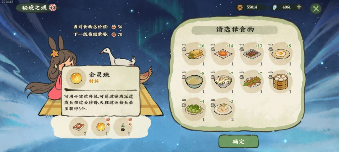 秘境等级2 派遣等级2 食物价值200 可以获得:3学识+2灵珠+3树苗 #仙山小农攻略征集 #仙山小农日常打卡 #仙山日常打卡 【食物】 【价值】 【食材】 1.烤蜈蚣 +74 2普通毒虫干 2.烤鸭 +48 1鸭肉+2香菜 3.东安仔鸡 +43 1鸡肉+2辣椒 4.青菜煎蛋面 +35 1面粉+1鸭蛋+2青菜