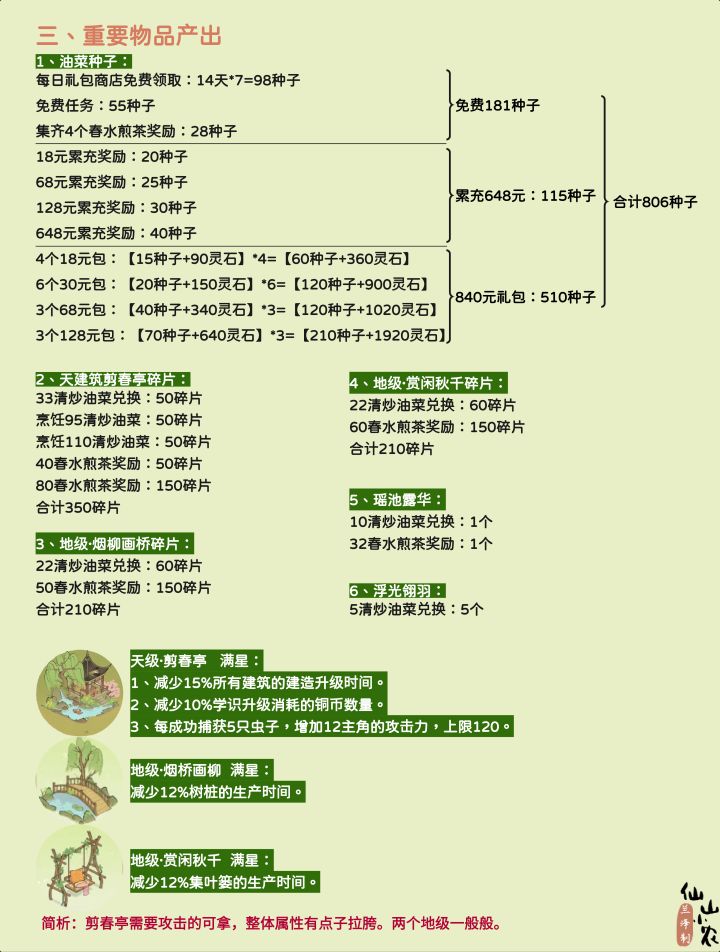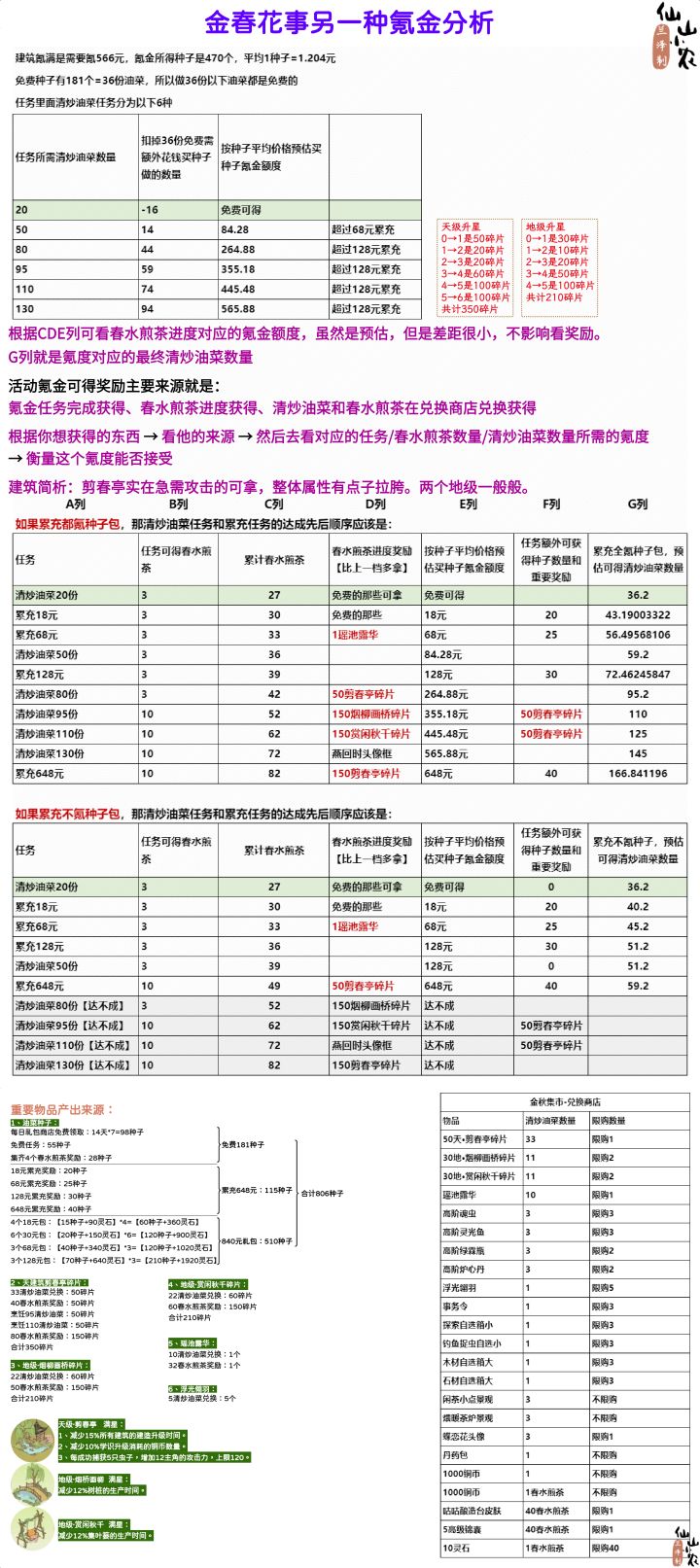 三编换图1纠错二编新增:加了一个另一种氪金分析图,那个图怎么看也都写上面了,我自己觉得很好用,看不懂就再问吧。时间比较赶攻略做的比较急,可能有算错的地方,最好自己再核对一下。#仙山小农 #仙山小农攻略 #仙山小农活动攻略