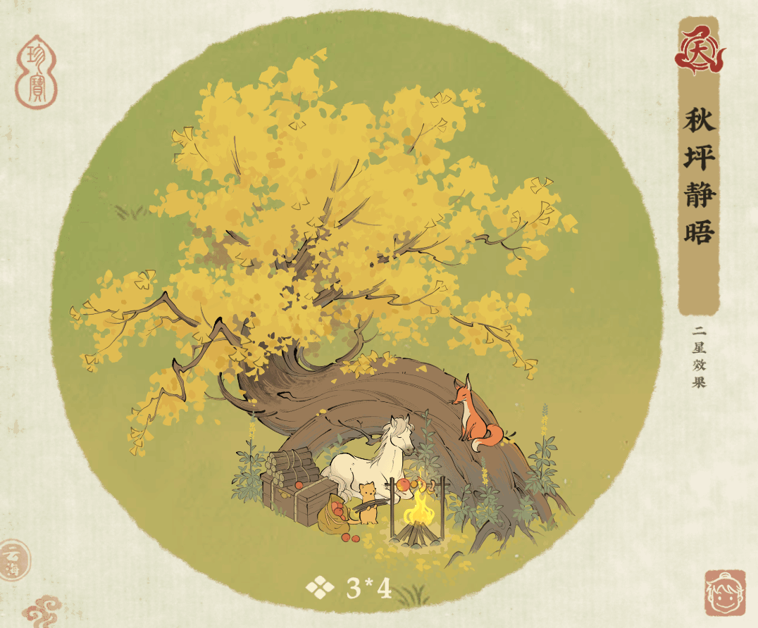 【建筑描述】秋坪静晤:万物有灵,缘聚秋坪处。兽不语,落叶如絮,全说与秋风。星级解锁功能:1星动画:白马吟2星动画:森语集3星动画:子夜变4星解锁:「秋芒草」图纸5星解锁:「龙牙草」图纸6星解锁:「石板路」图纸【建筑满星属性预览】1、出售物品时,额外获得15%宗门贡献。2、每成功捕获3只虫子,增加12主角攻击力,上限120。【建筑故事】十月初临,千年银杏树披上盛装,叶片如金