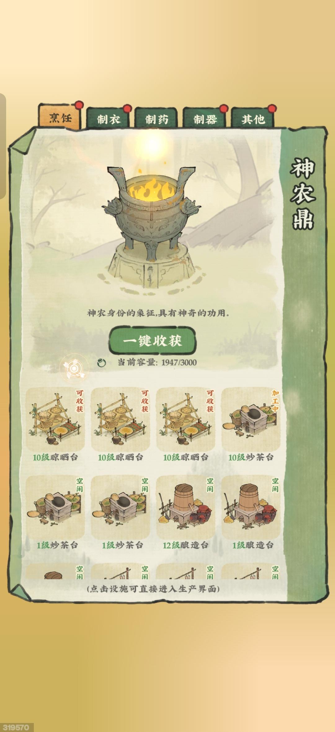玩了好久才注意之前没把设施全建完,然后建完发现要摆出来(然后随便你收不收),不然鼎里会没有这个设施
