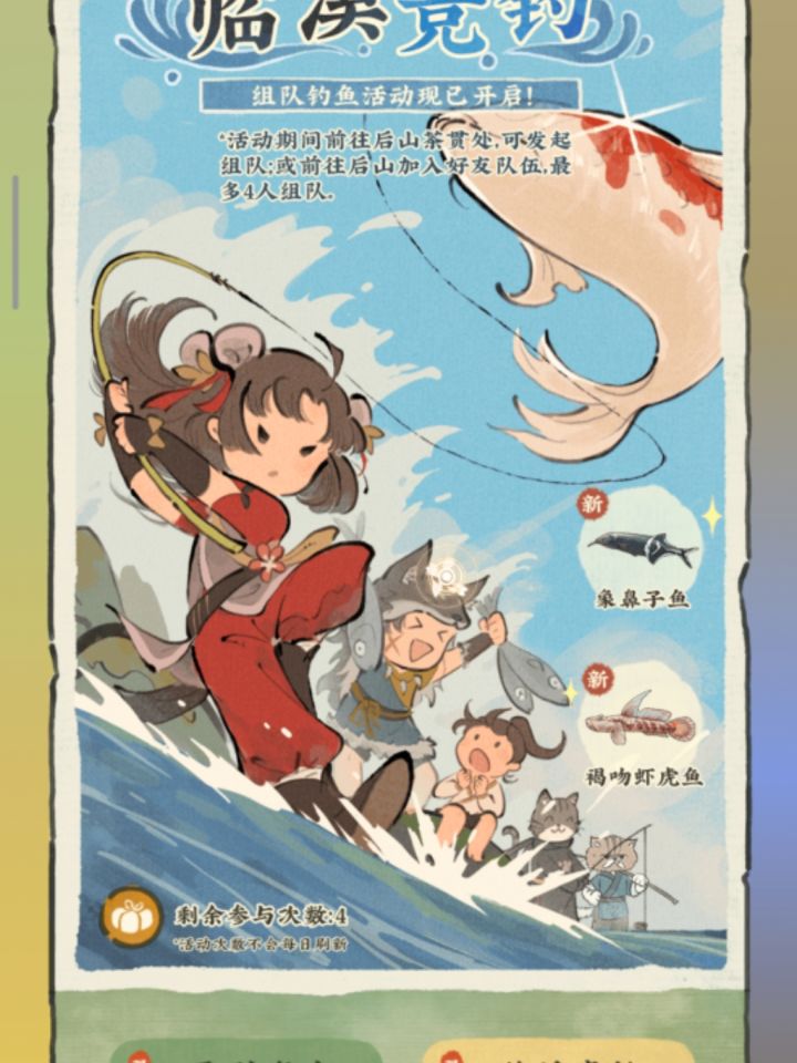 1️⃣ 喵的祈愿· 地点与NPC|后山-茶贯· 任务依次需要➠泥鳅、青鱼、草鱼、橘金鱼、蛤蜊、带鱼、胖头鱼、锦绣龙虾、没画完的饼、锦鲤 ┈ · ┈ 2️⃣ 品香雅事· 地点与NPC|香料店-萨夏· 任务依次需要➠薄荷、芦荟、伴妖草、兰花、赤髓芝、白术、龙胆、白豆蔻、凤尾草、菊花 ┈ · ┈ 3️⃣ 何事绁尘羁· 地点与NPC|菊岛-菊叟· 任务依次需要➠蜜水、益气丹、朱红灵果、菊花*3