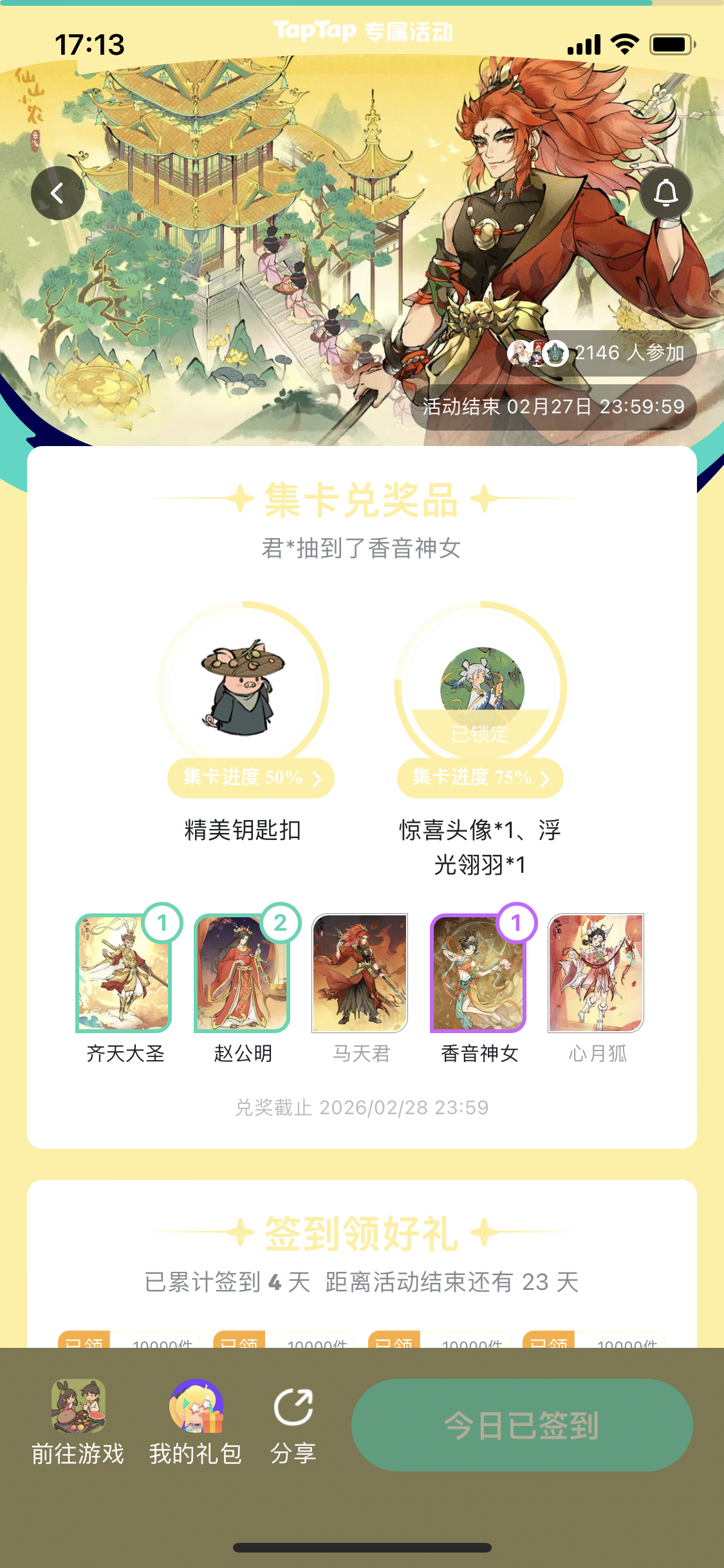 已经连续两天签到抽到卡片后提示打开游戏失败领取不了奖励