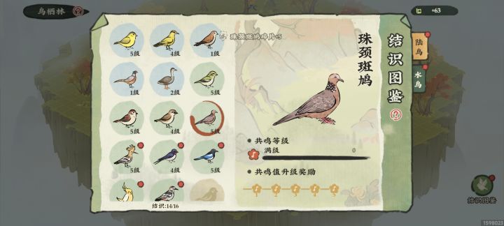 关于鸟栖林,今天才发现鸟七零有这么多角色碎片可以领取。。。以前只大致知道共鸣值提高有奖励,我还以为是提高抓鸟是初始分数呢,结果每次张角的时候看分数没变化,以为这是啥没用的设定,结果今天才发现奖励是在这儿呢。。。o( ̄ヘ ̄o#)#游戏日常