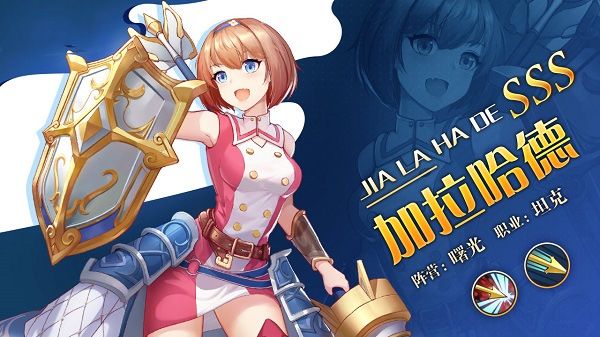 “勤练带来力量!”为了守卫家园而提起武器,认真又善良的少女。眼前的难题永远不会将她打败,时刻以满满的元气感染着身边的人。加拉哈德十分喜欢鲜花,消沉的时候看到美丽的花儿仿佛可以获得力量,提起精神继续教训讨厌的怪物。手持盾牌的加拉哈德在对阵中担任前排的。怒气技能在攻击敌人的同时可以释放护盾为自身抵御攻击。