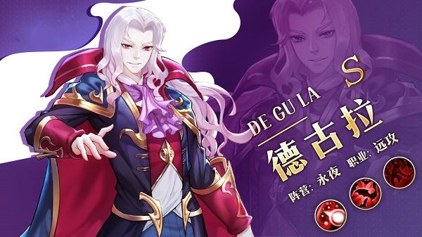 德古拉是一位远攻型英雄,他的怒气技能和组合技能都能在攻击的同时有一定概率降低敌方防御。作为吸血鬼伯爵,德古拉的技能还有一定概率能吸收对方血量。