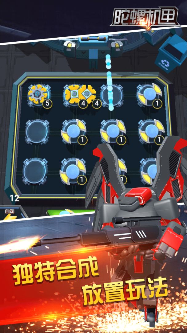 陀螺机甲是一款合并陀螺战斗游戏,合并最高级的陀螺,并且拖动到上方战场中和BOSS进行对战。
