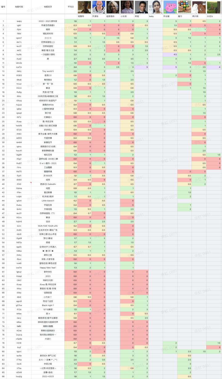 这个月的地图数真是不少,辛苦各位精委地图总数:425张平均得分:0.8全勤:格鲁特、天津饭平均打分最低(精鲨):超感猎杀平均打分最高(精侠):乔治猪平均打分最接近最终得分(公平公正奖):天津饭本月处理的工作量确实较大,表格中难免有疏漏大家有任何疑问可以在评论区中提出