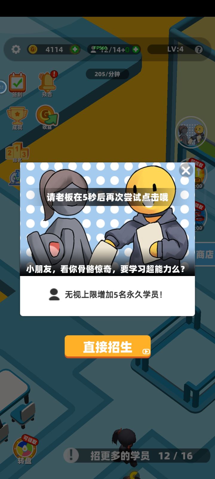 在第四层的时候,通过叠加每分钟超过1000a的时候,看广告就无法增加金钱每次直加1000a,不知道是不是有b0g,说好了增加15分钟的金钱,结果一分钟都不到