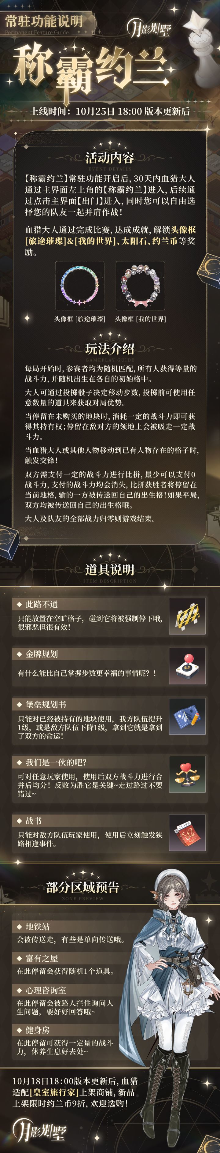 【月影别墅】[称霸约兰] 游玩指南上线