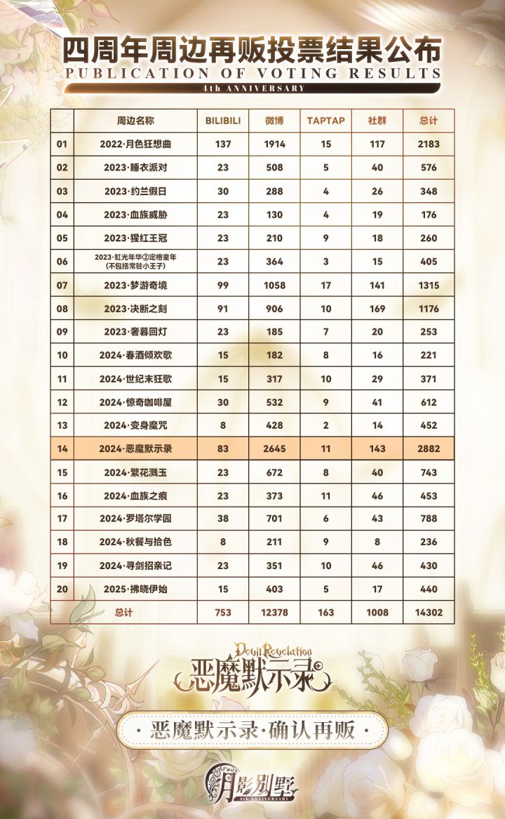 【月影别墅】周边再贩 | 投票结果