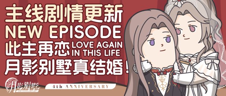 四周年庆典活动·誓约之刻 活动预告说明【小别墅的活动通知!】四周年海量福利,千万不要错过~婚纱,送!约兰币,送!太阳石,送!详细活动内容,请查看下方长图(*^▽^*)血猎活动中心:官方8群:536208824微博:月影别墅B站:月影别墅公众号:拉萌工作室抖音:月影别墅