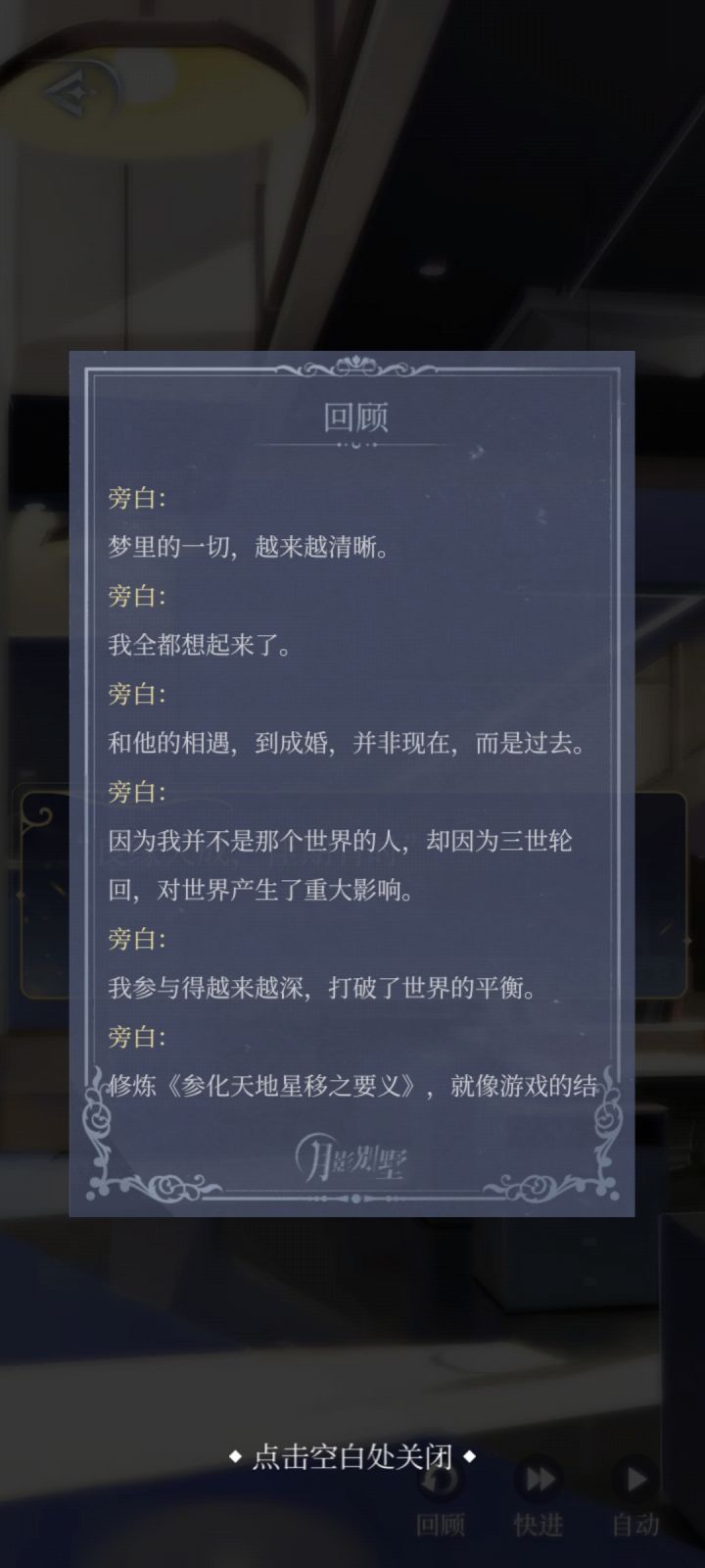 过了该隐线刚开始一头雾水,到后面才恍然大悟,原来是一场戏中戏🥲过到后面我都有点像梵优一样分不清现实和游戏了,也许这个月影别墅也是该隐做的呢?游戏的每一个番外都是穿越的一世?最后的结局也很好,如果有一天真的收到一个神秘的包裹呢虽然总是骂小别墅,但是几乎每次的番外都是写的不错,有深度,即使过完了也意犹未尽回味无穷啊不过还是有点疑问,这个游戏是该隐做的吗?就是为了让梵优