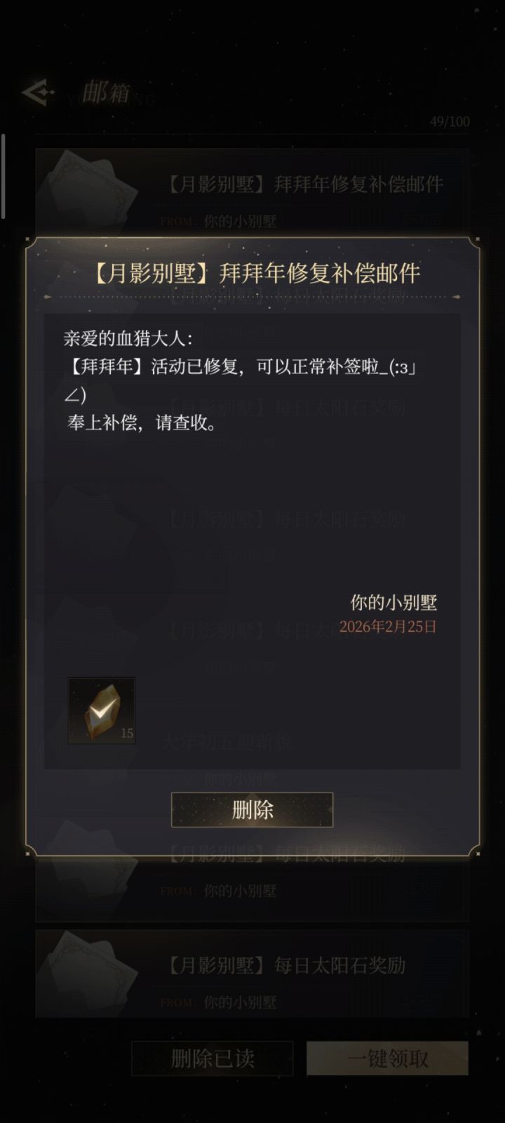 再此说明一下,本帖子无关任何男主,这只是作为一个玩家而发表的帖子。月影别墅在我看来,剧情很打动我,我很喜欢这种有活人感的游戏。各种优化改变并不多,甚至有的是反向优化,体验感真的不好,一点都不好。比如签到和领体力的界面,每次要重头开始,还有约兰争霸和猎人委托的功能,经常没有反应。偶尔还会把太阳石吞了,一套衣服花了两倍太阳石。游戏进不去,进去也很卡,这不是我的网络问题也不是手机问题,我打赌很