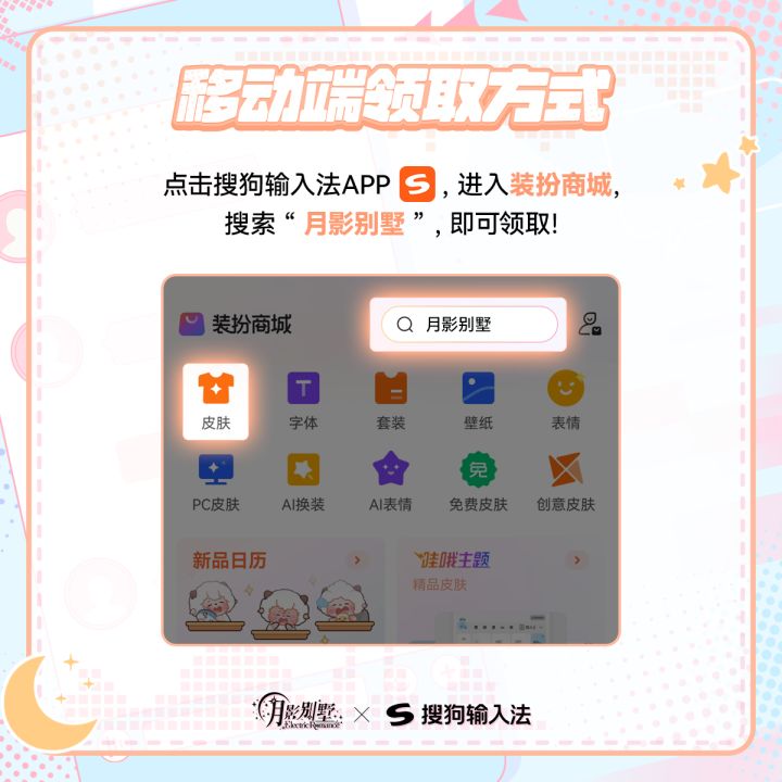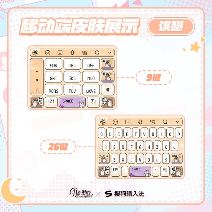 🌷指尖敲出世上所有美妙的词句,让每一次表达都有他陪伴在身边吧。@月影别墅×@搜狗输入法 [电波罗曼史]主题移动端&PC端 双端定制皮肤已上线!PC端可搭配壁纸配套使用,移动端覆盖9键与26键,血猎大人可根据需要选择哦~❤️超级可爱的输入法皮肤和丝滑美妙的搜狗输入法,正在期待血猎大人的到来!❤️获取方式:点击搜狗输入法APP,进入装扮商城,输入“月影别墅”,即可领取!更多皮肤展示请血猎大人查